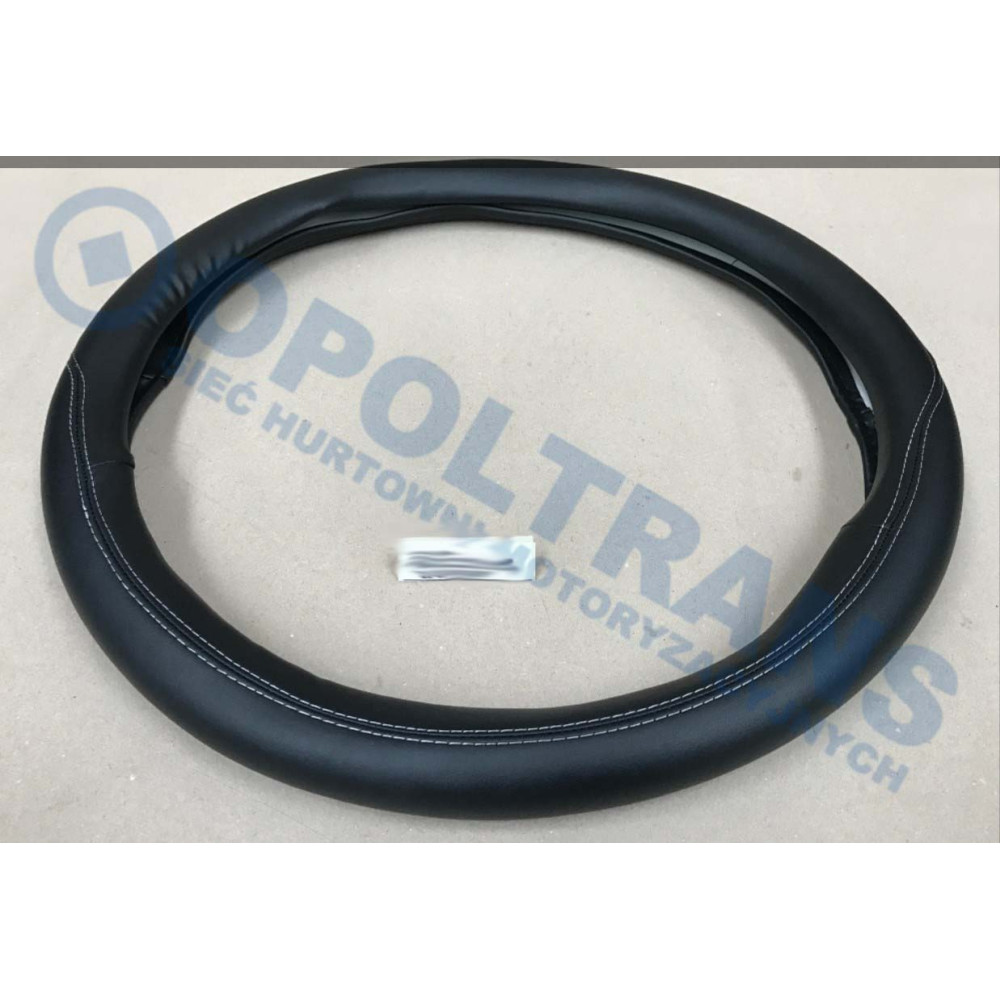 Чохол кермовий шкіряний чорний чорна нитка XXL D44/D46см