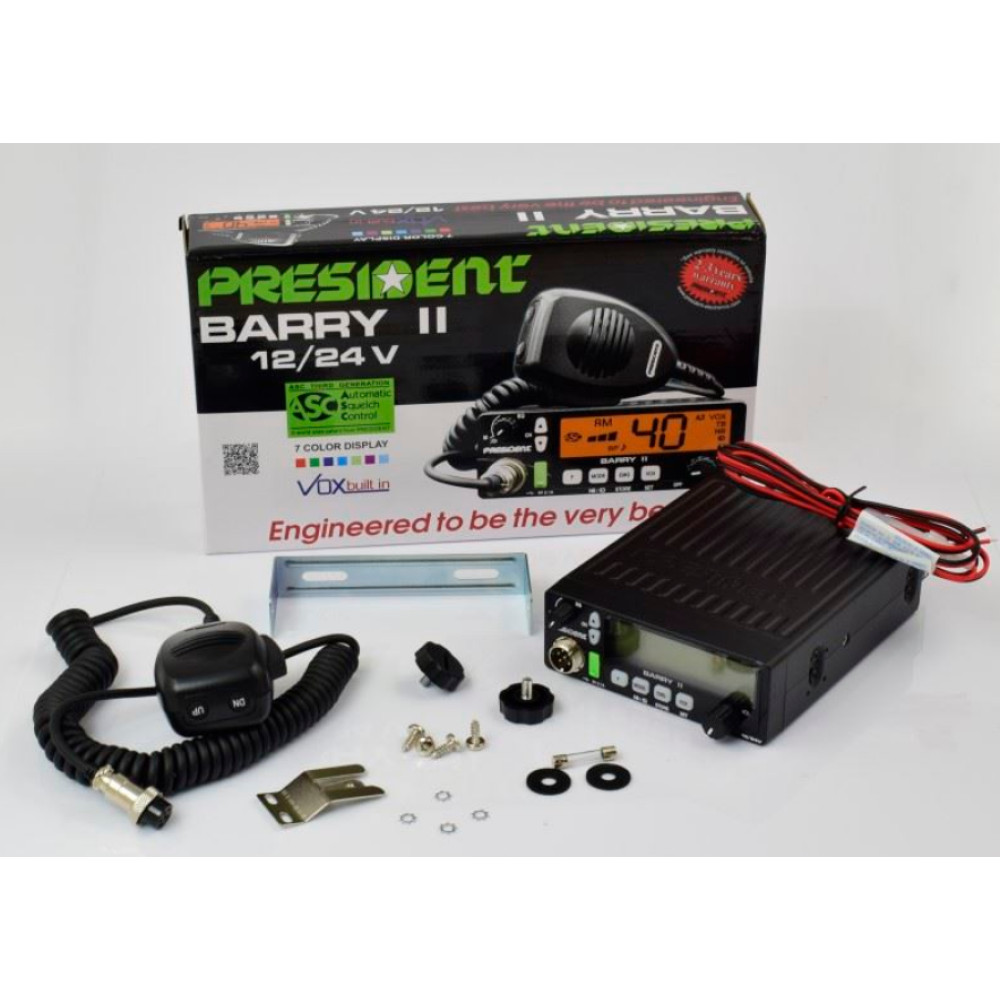 Рация PRESIDENT Barry II ASC (мощность передатчика - 4Вт, напряжение - 12/24В, 125x175x45мм)