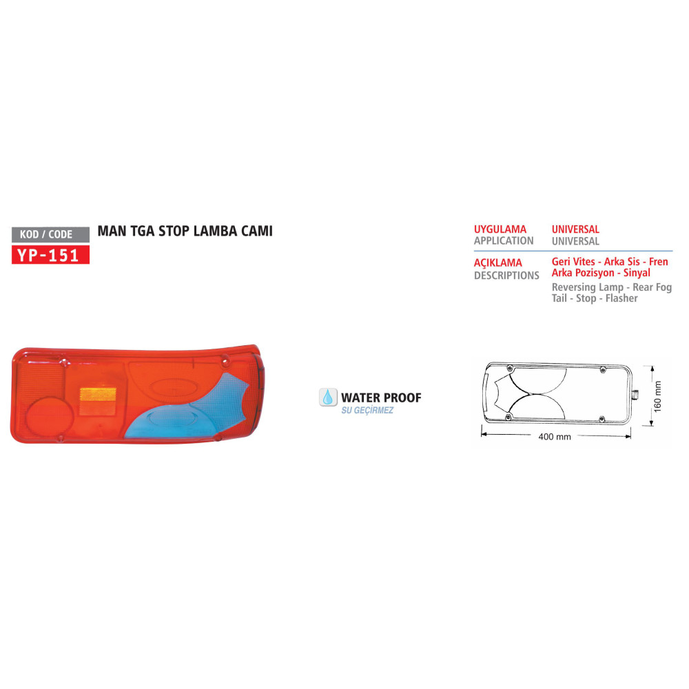 Стекло фонаря заднего правое MAN TGA (голубое) 812522960