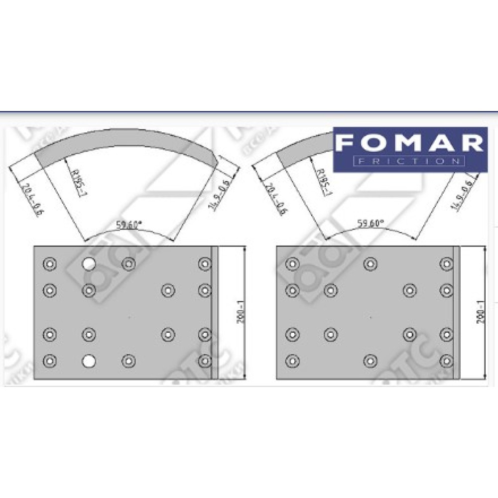FOM65221100A8RV, Гальмівні накладки барабанные STD (410x200) IVECO + ЗАКЛЕПКИ WWA 19091
