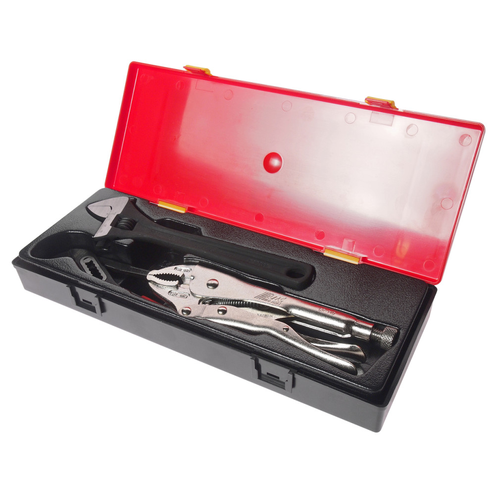 Набір: ключ розвідний, кліщі з фіксацією, ключ переставний 3од.